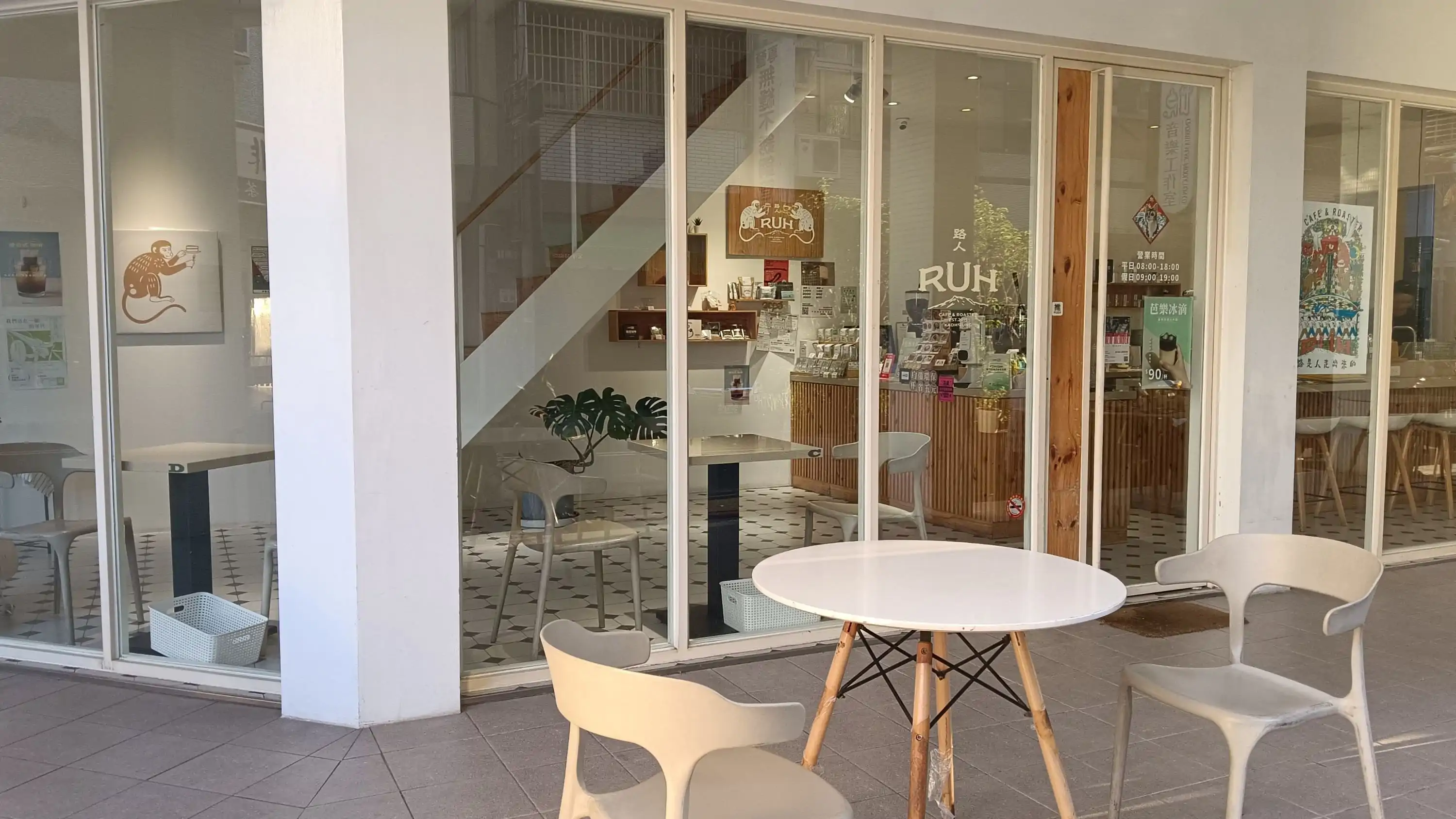 純白外觀的路人咖啡三號店座落於一排老透天厝中格外醒目,鄰近的哈爾濱街、宣化街也有收費停車場,交通上不麻煩。